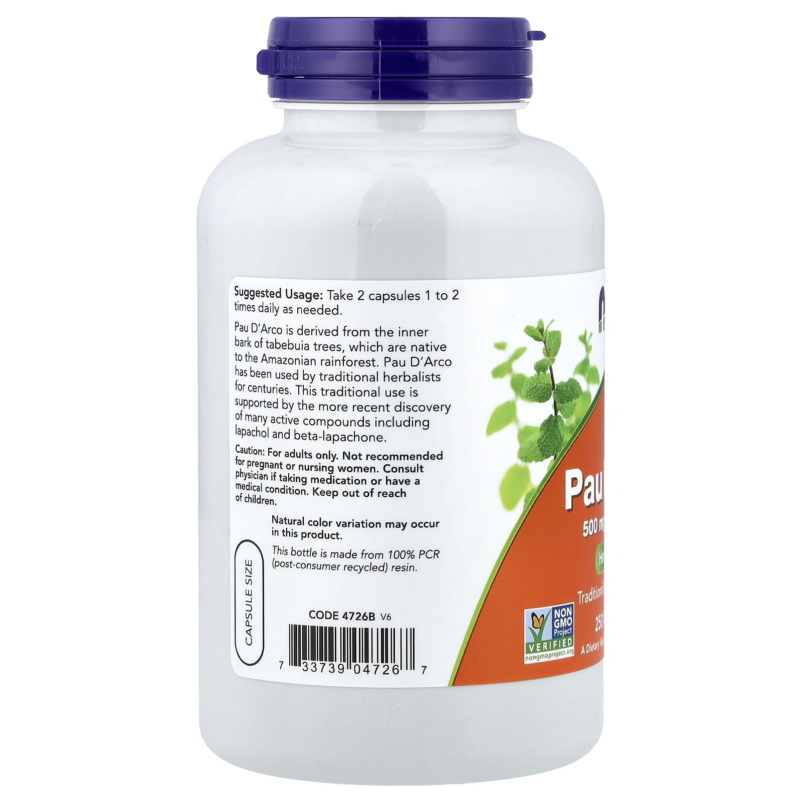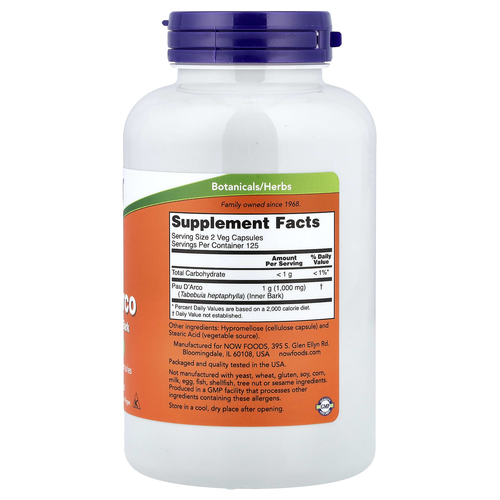 Pau D’Arco (Detoxifiant) 500 mg, NOW Foods îmbină tradiția unei plante respectate cu exigențele actuale de calitate. 1 g (1.000 mg) de coajă internă Tabebuia heptaphylla per porție livrează sprijinul vegetal de care ai nevoie pentru detox natural, imunitate activă, echilibru microbian, confort digestiv și protecție antioxidantă – un partener discret și eficient pentru bunăstarea de zi cu zi.