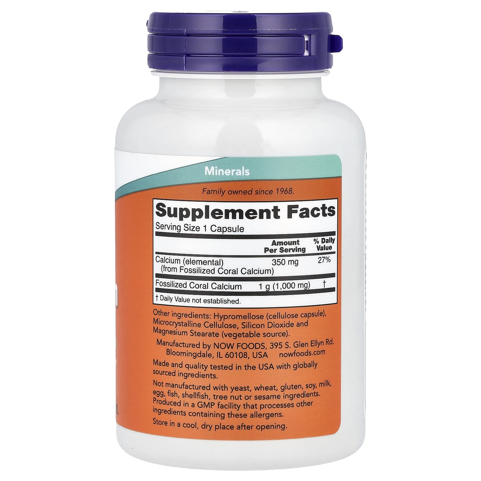 Calcium Coral, 1.000 mg, NOW Foods este o formulă minerală obținută din coral fosilizat, concepută pentru a susține sănătatea oaselor și dinților, funcția musculară normală și un echilibru acido-bazic favorabil metabolismului zilnic. Fiecare porție furnizează 1 g (1.000 mg) calciu de coral fosilizat, din care 350 mg calciu elementar (27% ZV), într-un format ușor de integrat în rutină. Calciul provenit din coral este apreciat pentru matricea sa minerală naturală și pentru profilul alcalin, elemente ce contribuie la o utilizare eficientă a calciului de către organism și la o stare generală de bine, resimțită în mobilitate, postură și confort muscular.