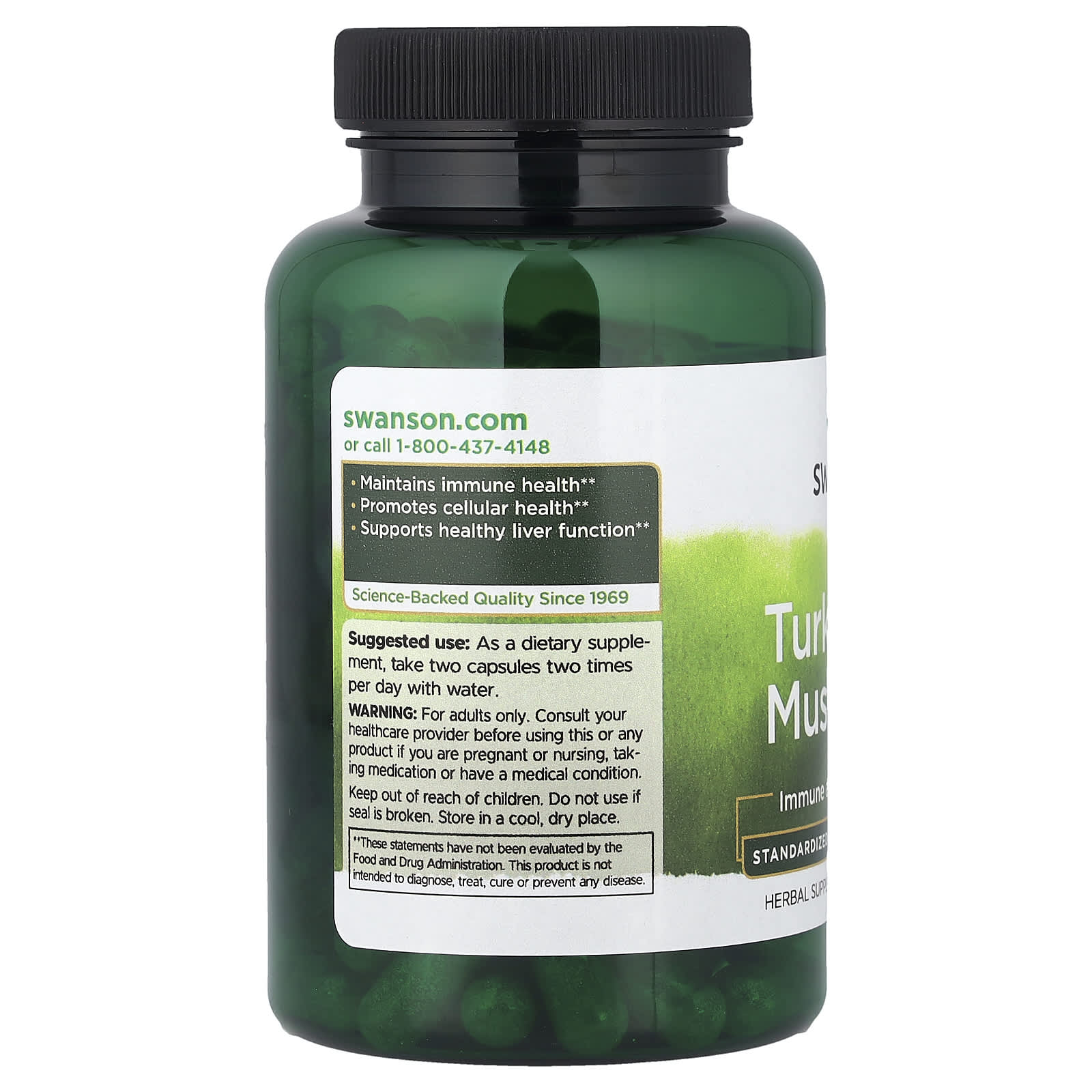 Turkey Tail Mushroom Extract (Coada de Curcan), Swanson este un supliment alimentar premium formulat pe baza extractului din corp fructifer de Trametes versicolor, una dintre cele mai studiate ciuperci medicinale din lume. Utilizată de secole în medicina tradițională asiatică, ciuperca coadă de curcan este recunoscută pentru capacitatea sa remarcabilă de a susține sistemul imunitar, echilibrul celular și reziliența organismului în fața factorilor de stres biologic. Formula Swanson furnizează 1 g de extract concentrat, standardizat la 45% beta-glucani, compuși bioactivi esențiali pentru modularea imunității și protecția organismului.