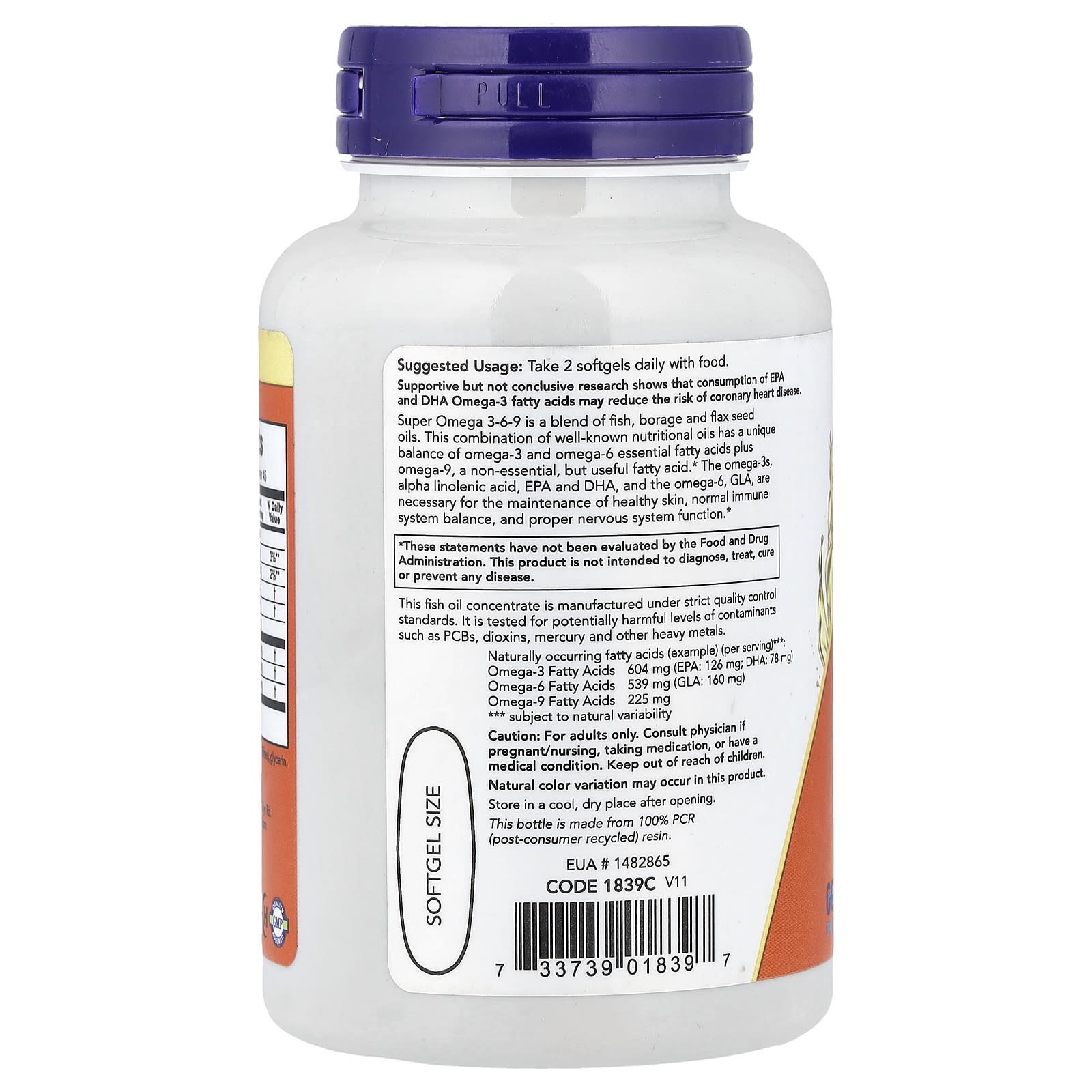 Prin designul său sinergic – ulei de borago (800 mg), concentrat de ulei de pește (800 mg) și ulei organic de semințe de in (800 mg) – Super Omega 3-6-9, 1200 mg, NOW Foods oferă un spectru complet de omega-3 (604 mg; EPA 126 mg; DHA 78 mg), omega-6 (539 mg; GLA 160 mg) și omega-9 (225 mg), pentru sănătatea inimii și creierului, echilibru inflamator, confort articular, piele suplă și reziliență zilnică.