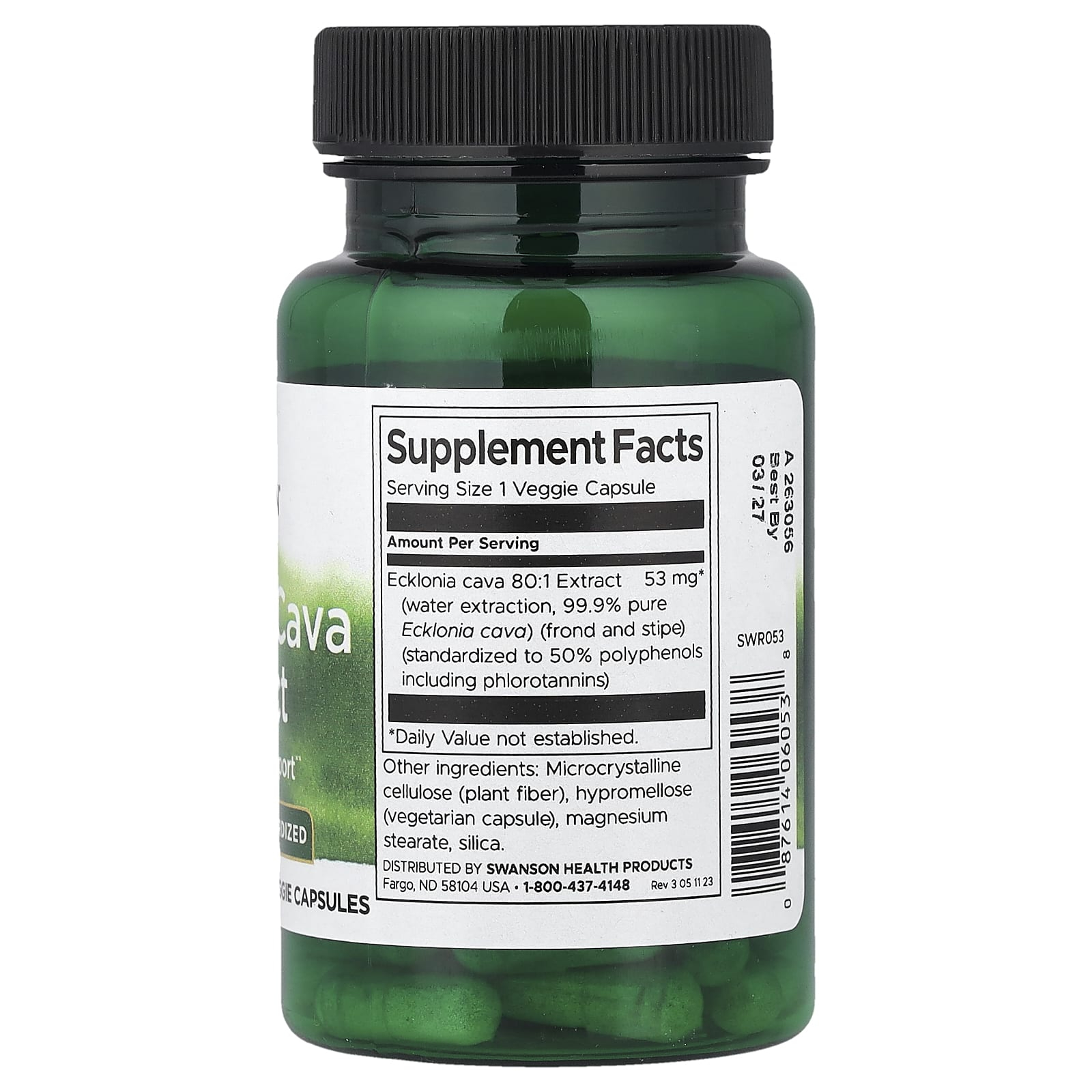 Ecklonia Cava Extract, Swanson este un supliment alimentar premium pe bază de extract concentrat din alga brună Ecklonia cava, standardizat la 50% polifenoli, inclusiv florotanini, obținut printr-un proces de extracție cu apă 80:1, 99,9% pur. Acest tip de extract este cunoscut pentru conținutul său excepțional de compuși bioactivi cu proprietăți antioxidante, capabili să neutralizeze radicalii liberi și să susțină protecția celulară. Polifenolii din Ecklonia cava sunt diferiți de polifenolii obișnuiți din plantele terestre, având o structură care permite o acțiune prelungită în organism și un spectru larg de efecte de susținere a sănătății.