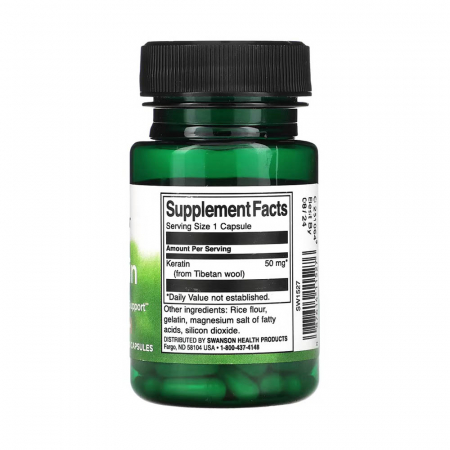 Keratin 50mg de la Swanson este un supliment inovator pe bază de cheratină, principala proteină structurală a părului, unghiilor și stratului exterior al pielii. Este extrasă sustenabil din lâna animalelor din Tibet.