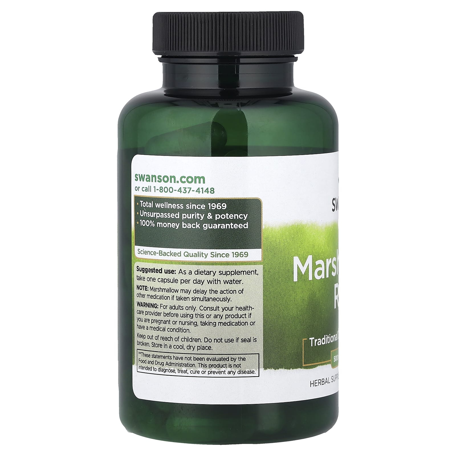 Marshmallow Root (Nalbă Mare), 500 mg, Swanson, cu rădăcină de Althaea officinalis, oferă un suport emolient tradițional, orientat spre protejarea mucoaselor, confort digestiv, susținerea gâtului și menținerea stării de bine a căilor urinare, printr-o acțiune blândă, de „învelire” și calmare a țesuturilor sensibile.