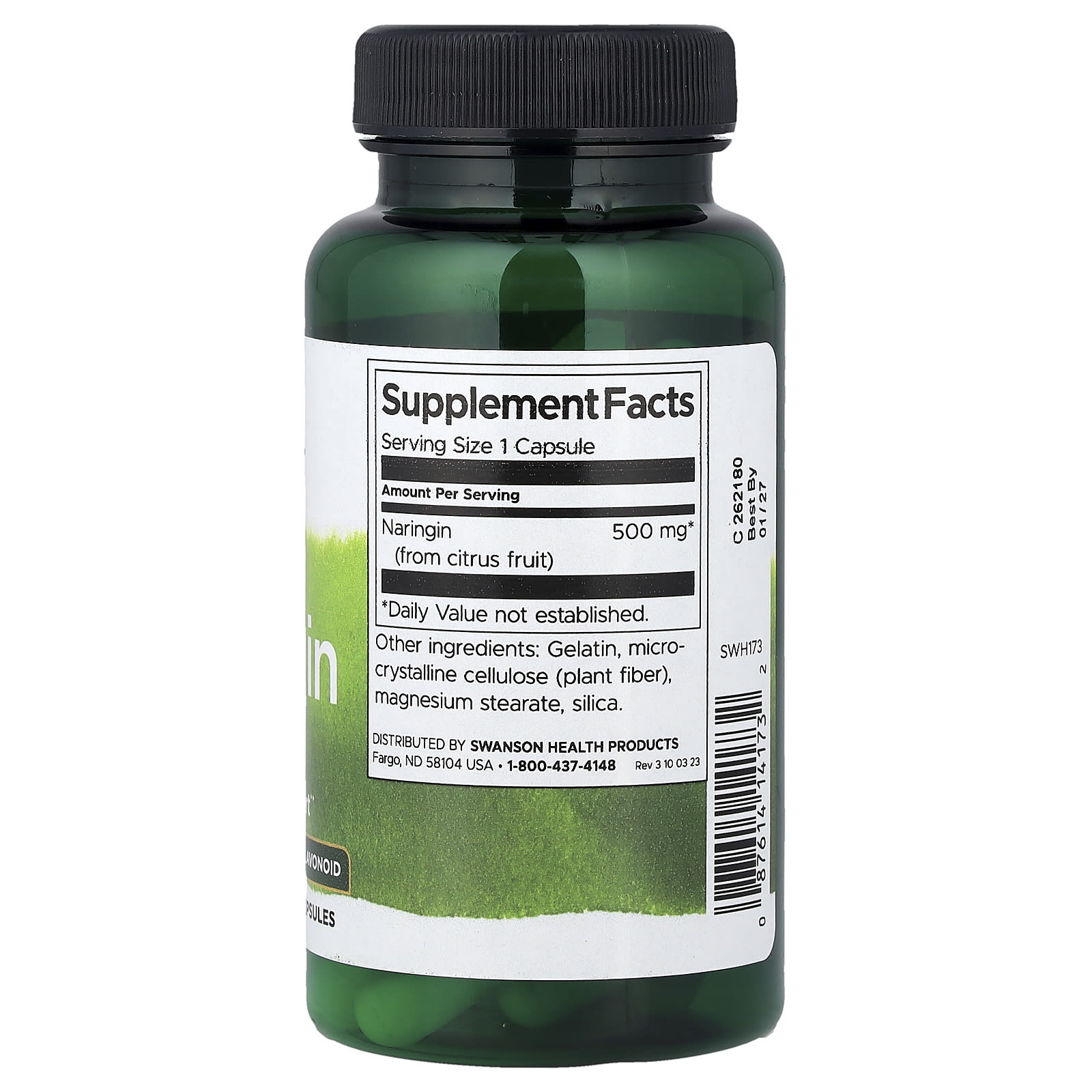 Naringin (Bioflavonoid), 500 mg, Swanson este un supliment alimentar premium care furnizează naringină, un bioflavonoid natural extras din citrice, recunoscut pentru acțiunea sa antioxidantă intensă și pentru rolul său în susținerea sănătății cardiovasculare, a metabolismului și a mecanismelor naturale de protecție celulară. Naringina este unul dintre compușii responsabili de gustul ușor amar al grepfrutului și al altor citrice, iar din punct de vedere biologic se remarcă prin capacitatea de a neutraliza radicalii liberi, de a sprijini integritatea vaselor de sânge și de a modula procesele inflamatorii asociate stilului de viață modern.
