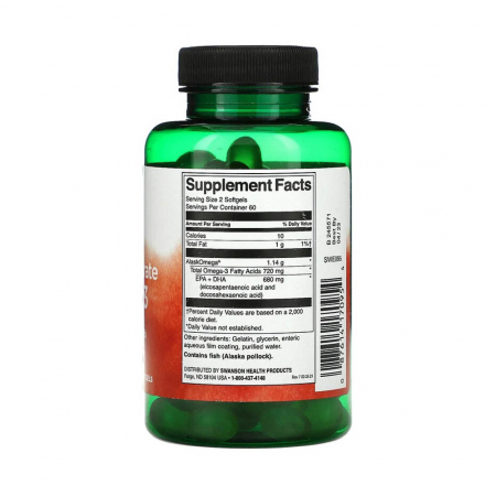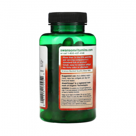 High Concentrate Omega-3, Swanson, este un supliment alimentar care furnizează o doză puternică și concentrată de acizi grași Omega-3. Acești acizi grași sunt obținuți din AlaskOmega®, o sursă premium care se bazează pe pești capturați în apele reci și nepoluate ale Alaskăi, asigurând puritate și eficiență maximă.