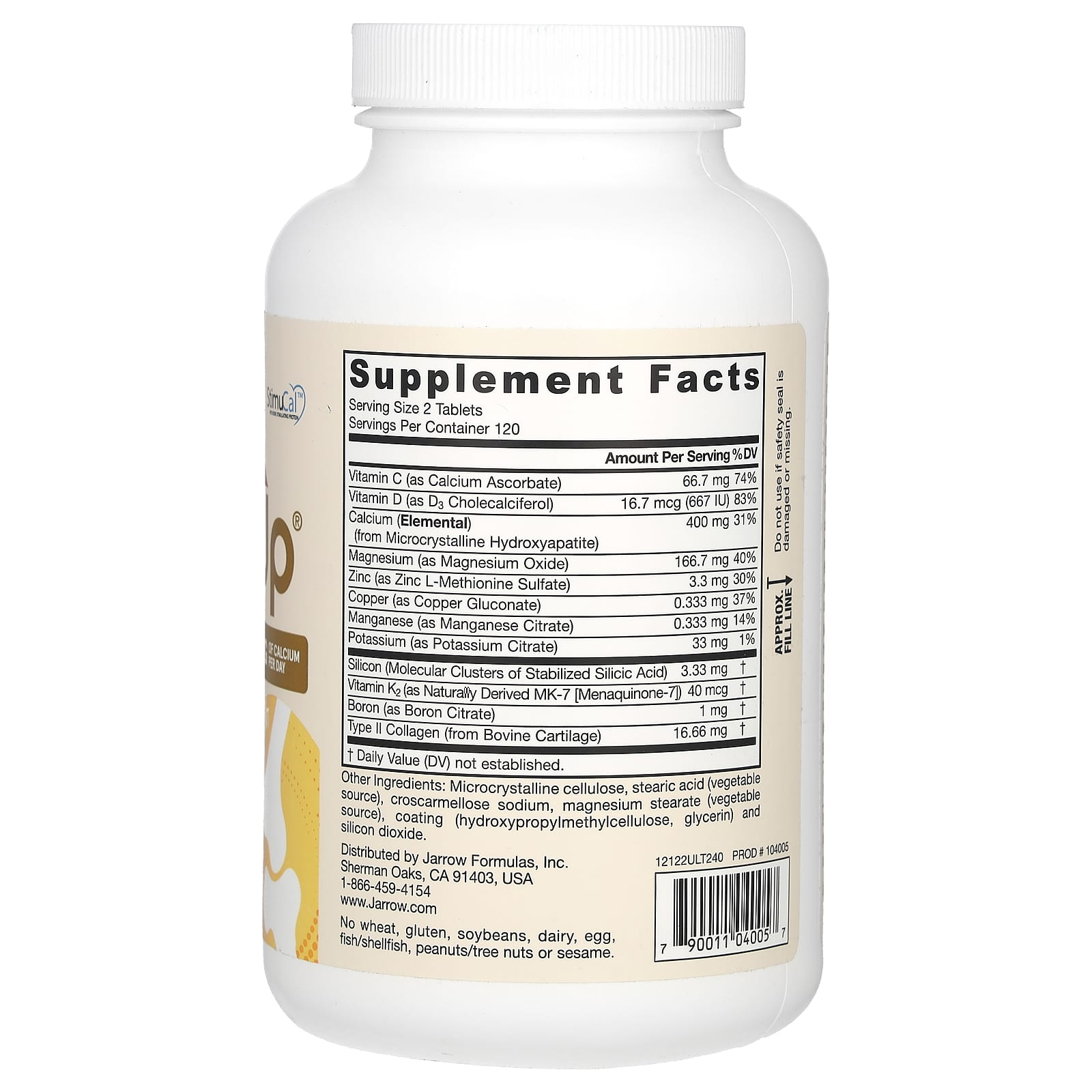 | Calcium (Elemental) (from Microcrystalline Hydroxyapatite) | 400 mg | 31% |