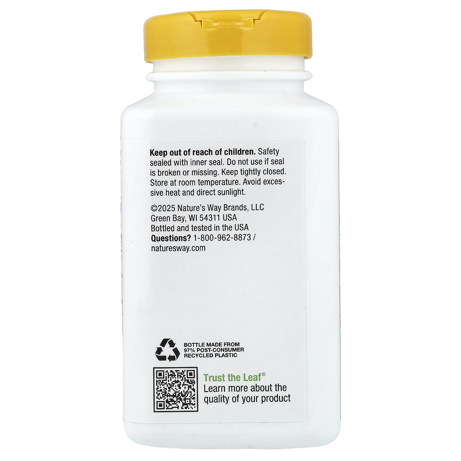 Keep out of reach of children. Safety sealed with inner seal. Do not use if seal is broken or missing. Keep tightly closed. Store at room temperature. Avoid excessive heat and direct sunlight.
