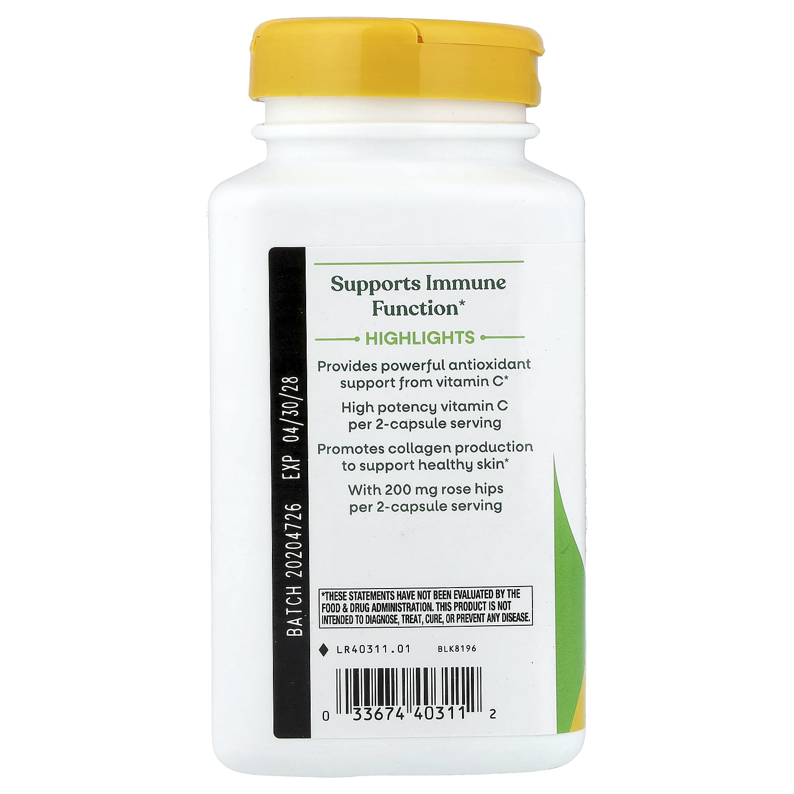 Vitamin C with Rose Hips, Nature's Way este un supliment alimentar de înaltă calitate, formulat pentru a furniza 1.000 mg de vitamina C (acid ascorbic) și 200 mg de extract natural de măceșe (Rosa canina), o sursă bogată de bioflavonoide și alți antioxidanți. Această combinație sinergică susține sistemul imunitar, protejează celulele împotriva stresului oxidativ, sprijină sinteza naturală de colagen și contribuie la sănătatea pielii, vaselor de sânge, oaselor și articulațiilor.